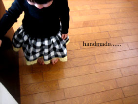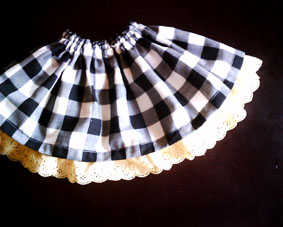 スカートはグリーンギンガム。パンツは黒のギンガム。