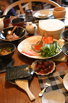 コンロ手前にあったワゴン(ルクを3段重ねて、