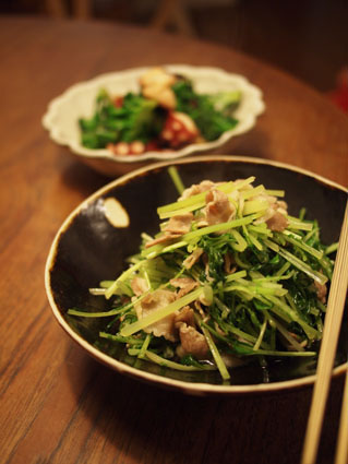 水菜は炒めるのに飽きたので、豚肉のサッと煮にしてみた。