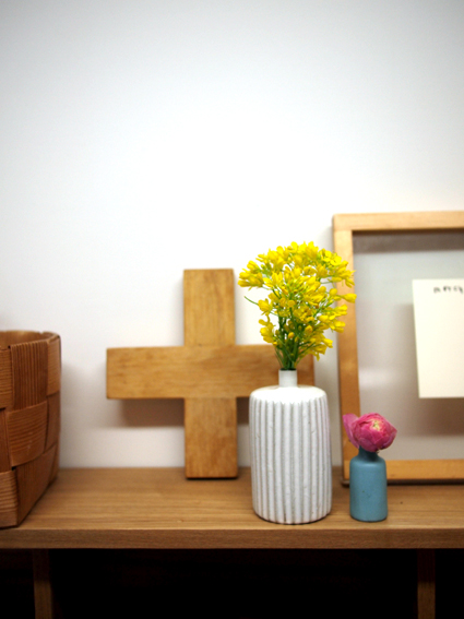 小さな花器には去年植えた白い花。(名前忘れました・・)