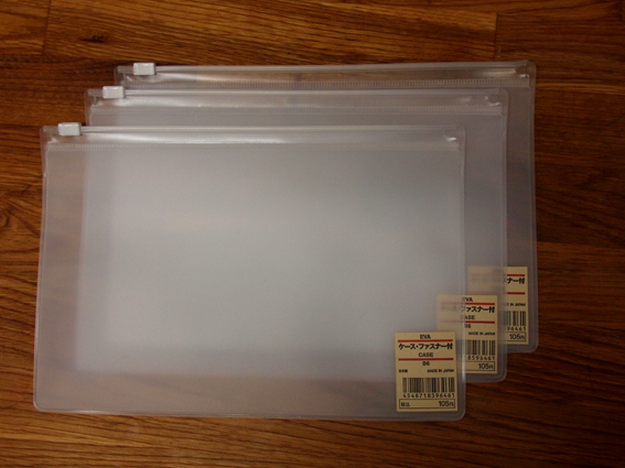 無印良品 ケース・ファスナー付 B6サイズ¥105 A5サイズは¥116。