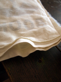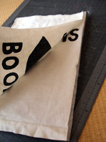 Tシャツを表裏、共にクルリと裏返し(中表に)、キルト芯は一番したのまま