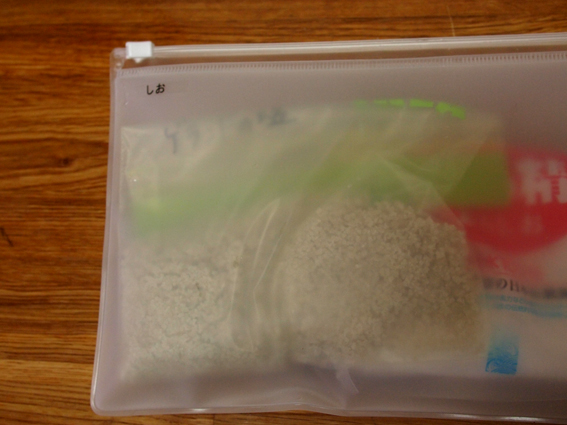 ゲランドの塩はパッケージがかさばるので、IKEAのプラスチック袋(ジップロック)