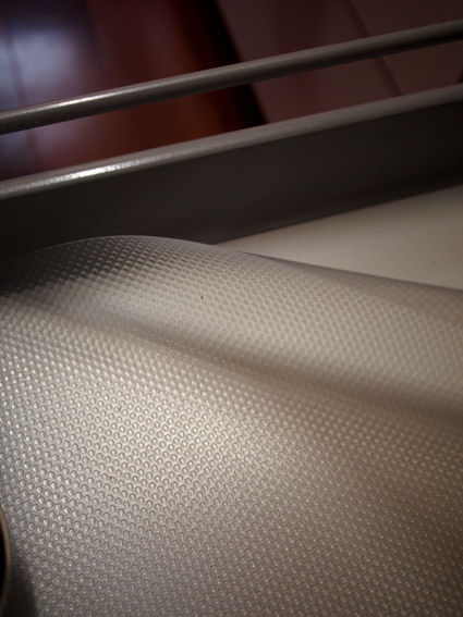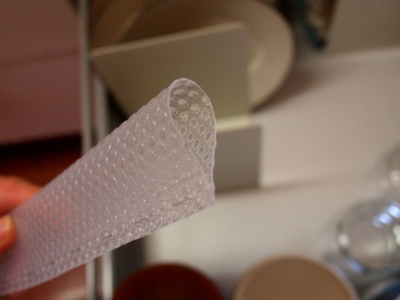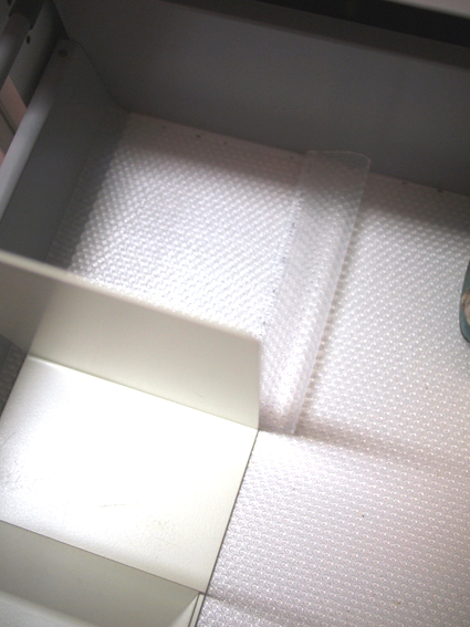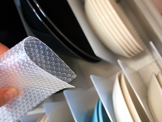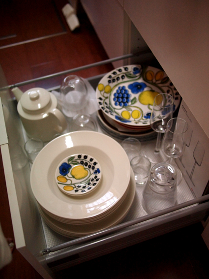 お皿が当たっても大丈夫。IKEAでシート、調達したらそちらに変えます。