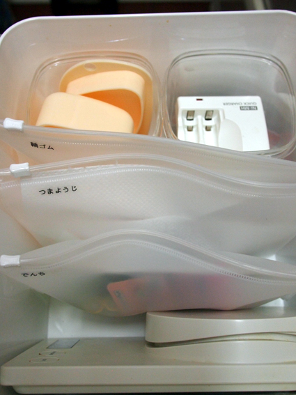 前回このケースに電池や輪ゴムなどを入れここに収めたら
