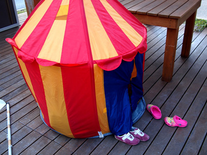 IKEAのテントを外に出したら5歳児2人、大喜び。