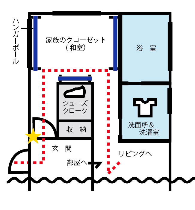 星(★)のところに和室へと続く扉と通路を作ったとして。