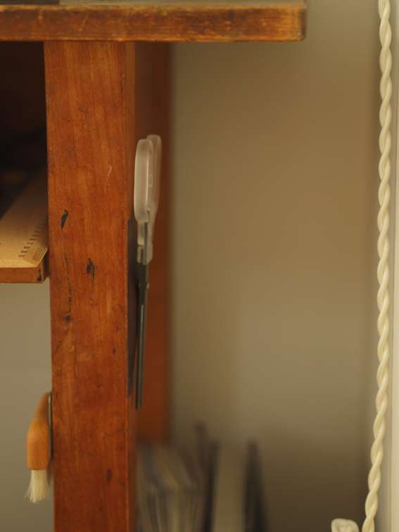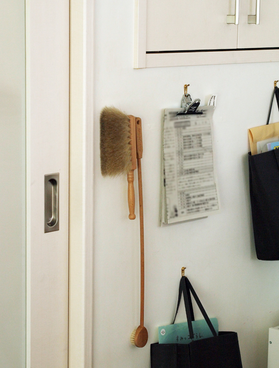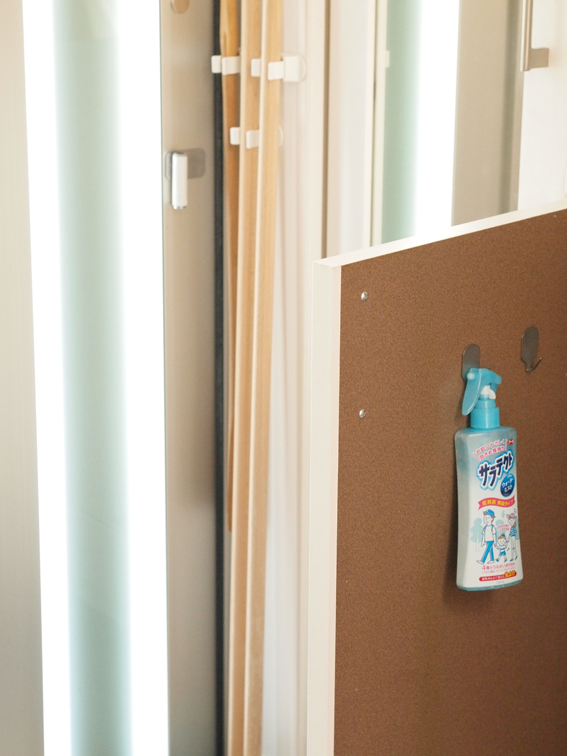 扉の裏にフックを取りつけ掛けていた