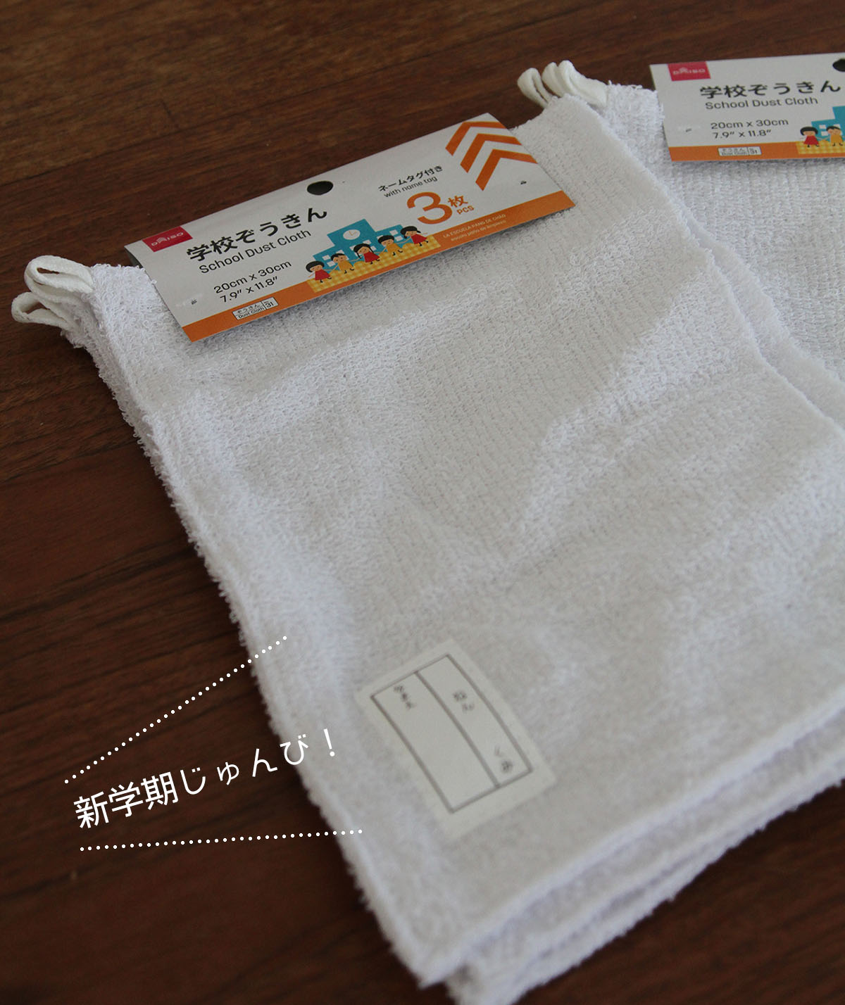 新学期ごとに雑巾(ループ付)がいるので