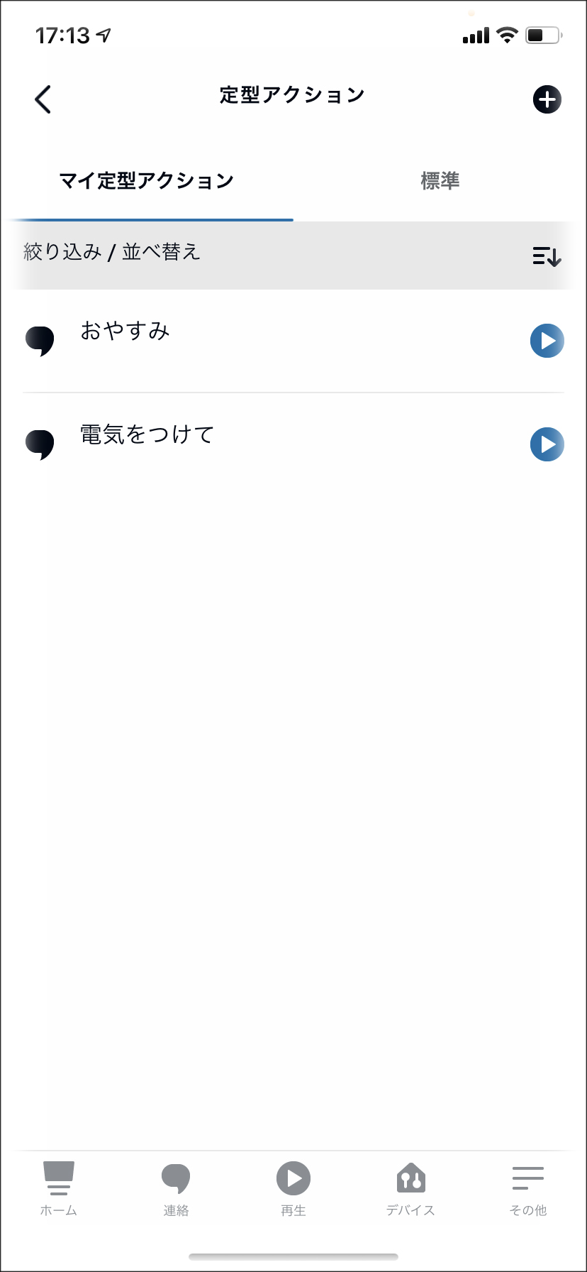 これはアレクサアプリの「定形アクション」から