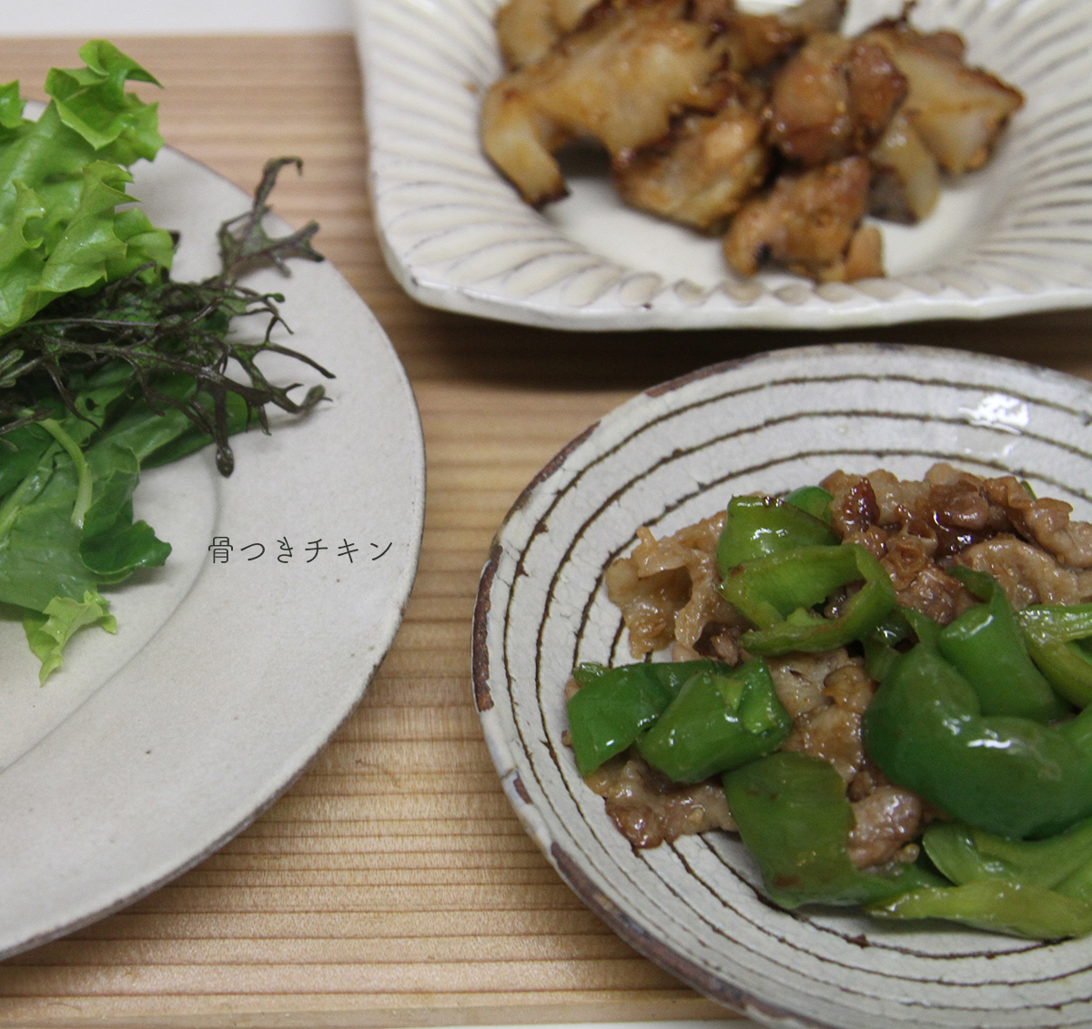 夫用はお皿に。これと冷凍餃子を焼いて、