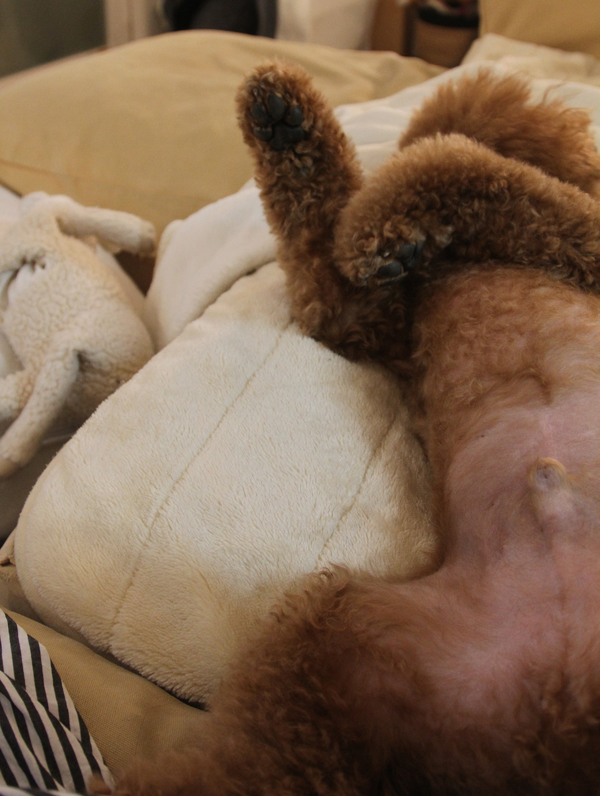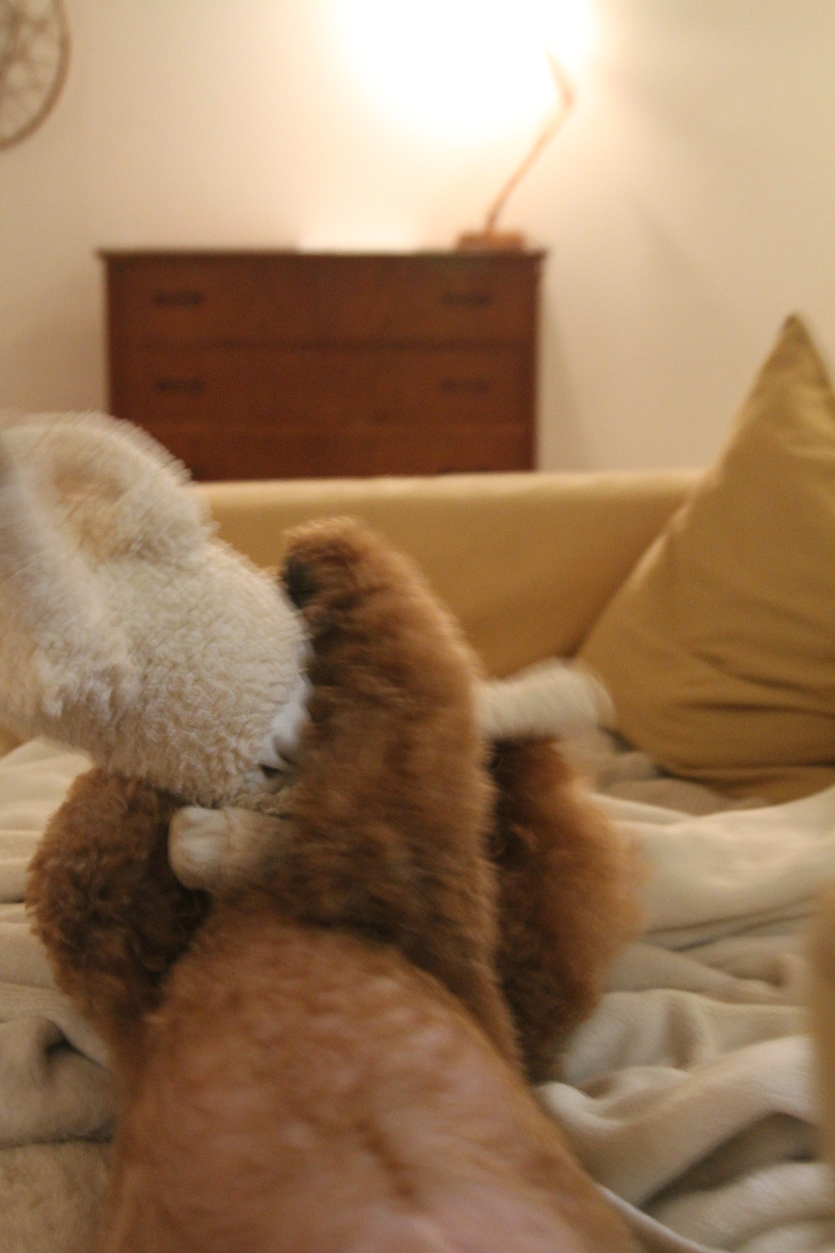 ずっと私の隣で羊のぬいぐるみと格闘しとりますが