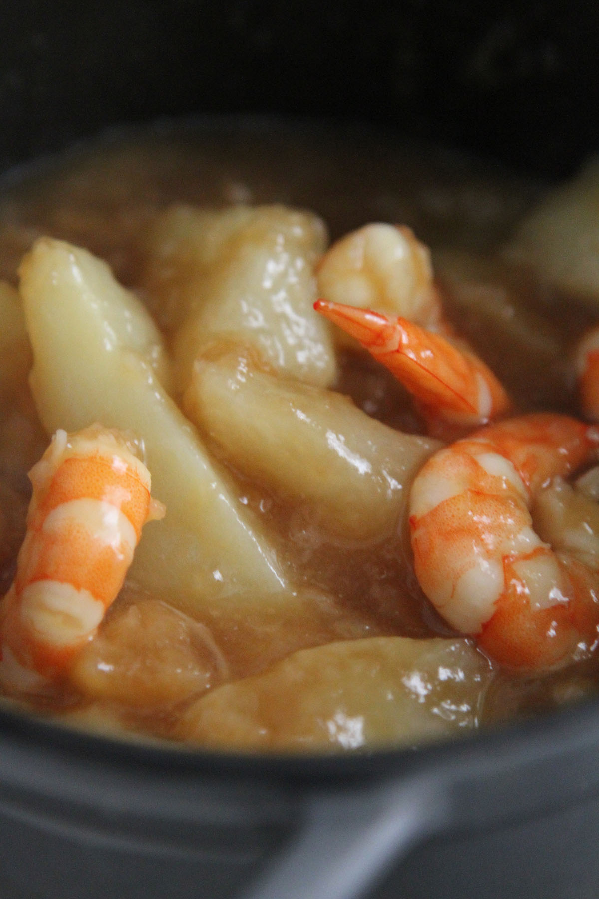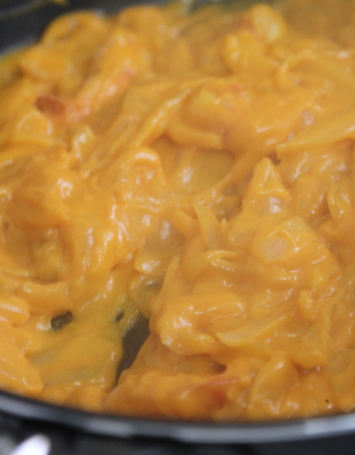 海老と玉ねぎをフライパンで炒めて
