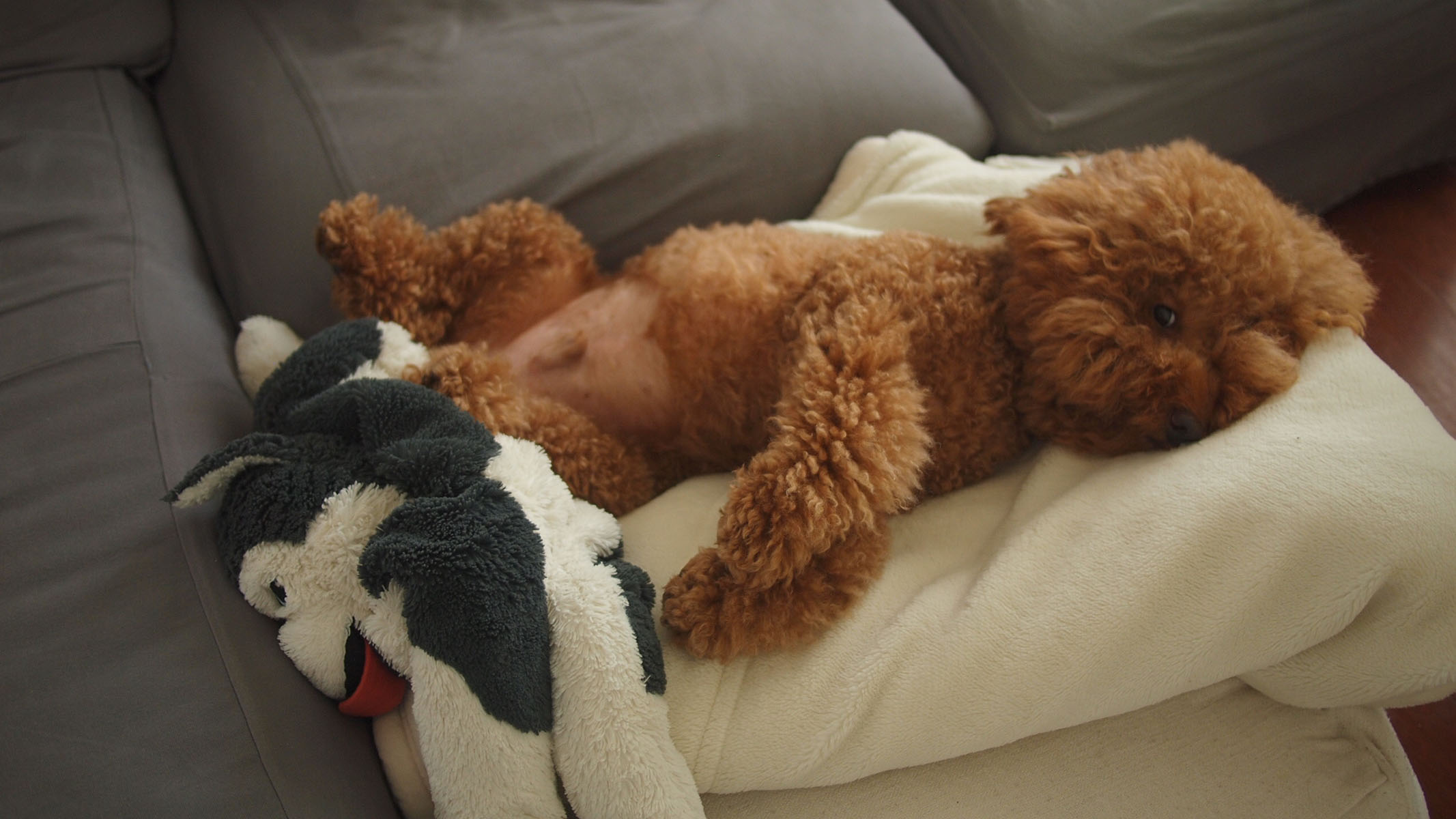 ボンちゃんの温もりとソファが好き過ぎる。