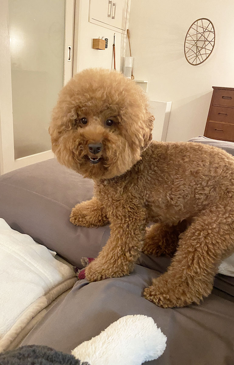 家に帰り、ソファに座ると膝の上にドカッ