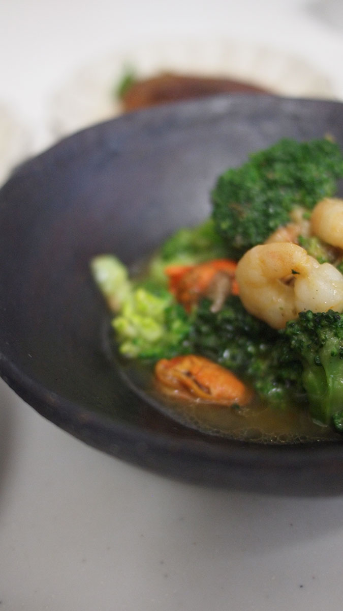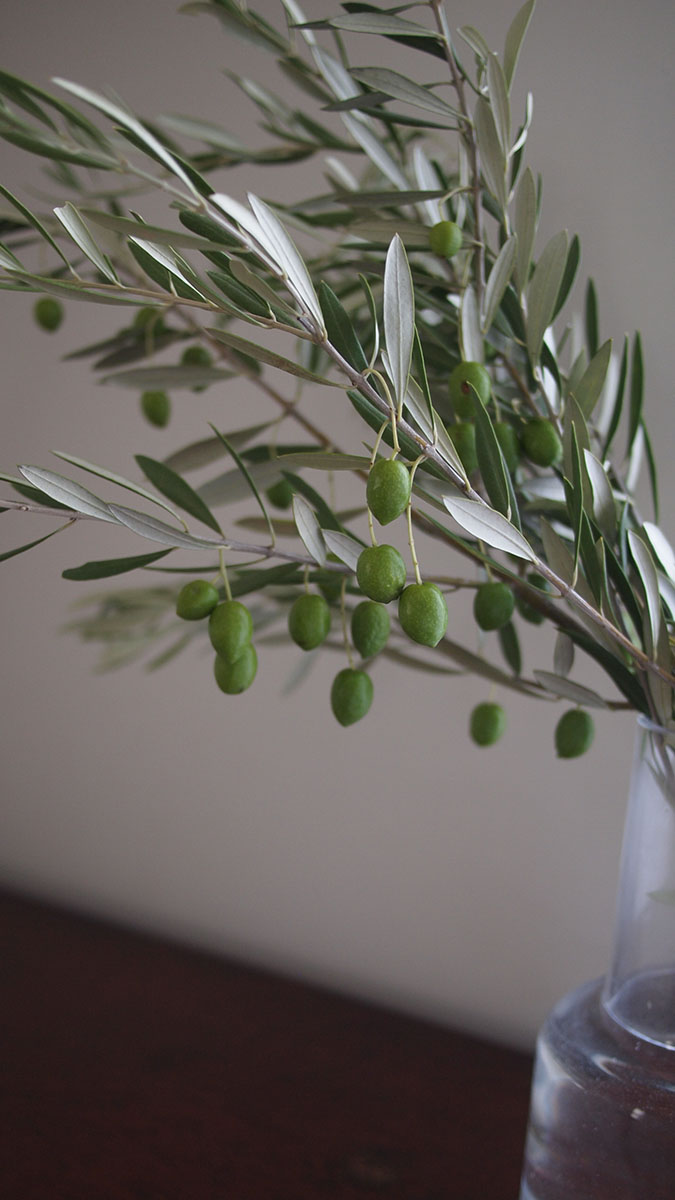 オリーブが壁にしなだれかかっていて、