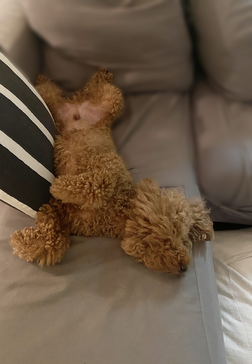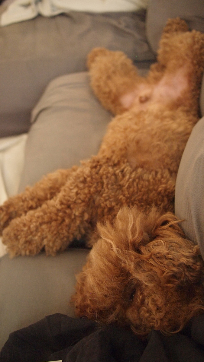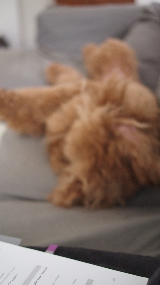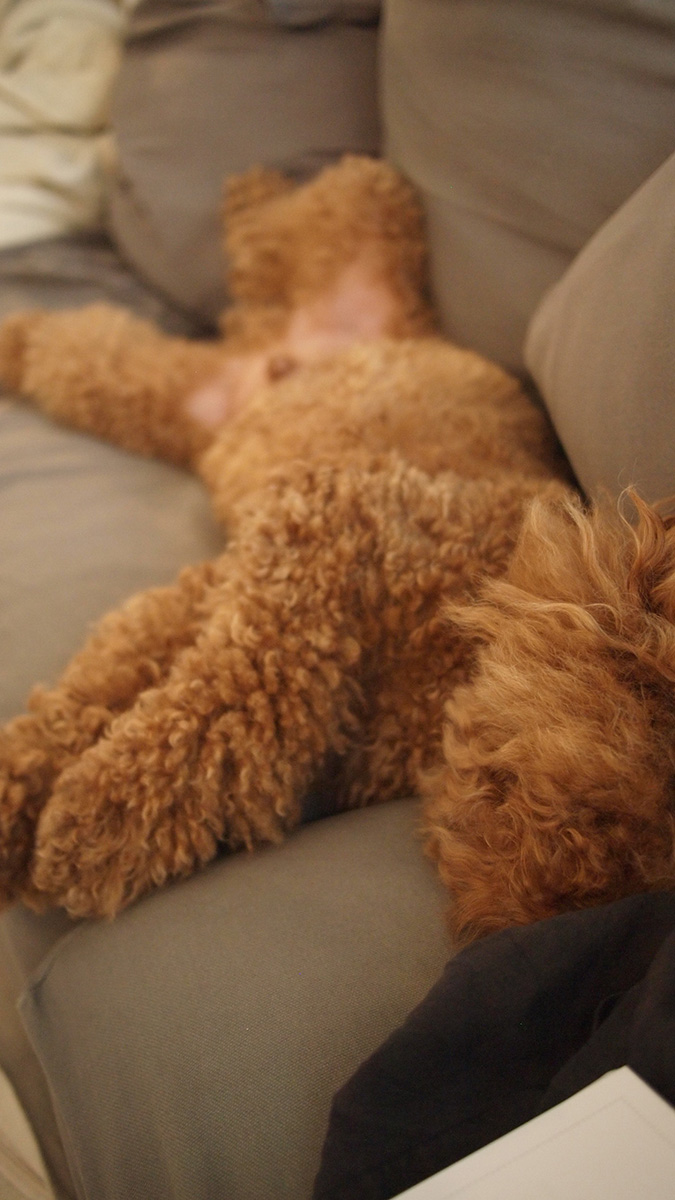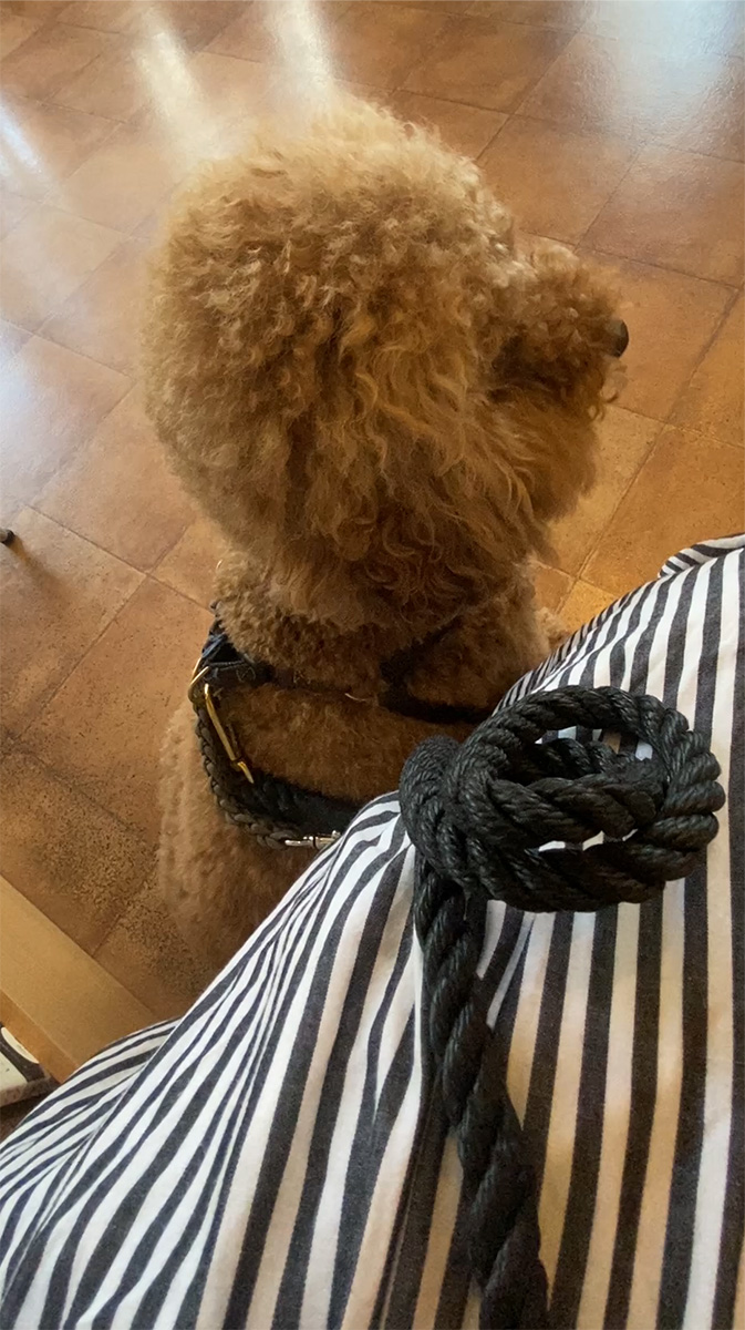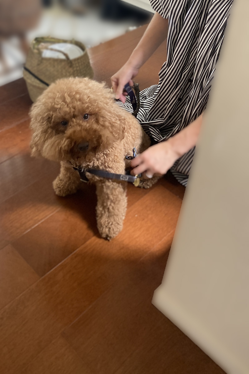 散歩から帰るとボンちゃん、何やら前脚の肉球を