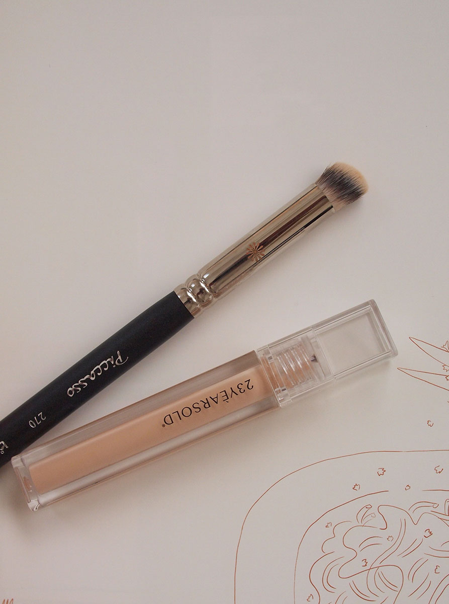 さらに、コンシーラーを筆にごく薄くとって、