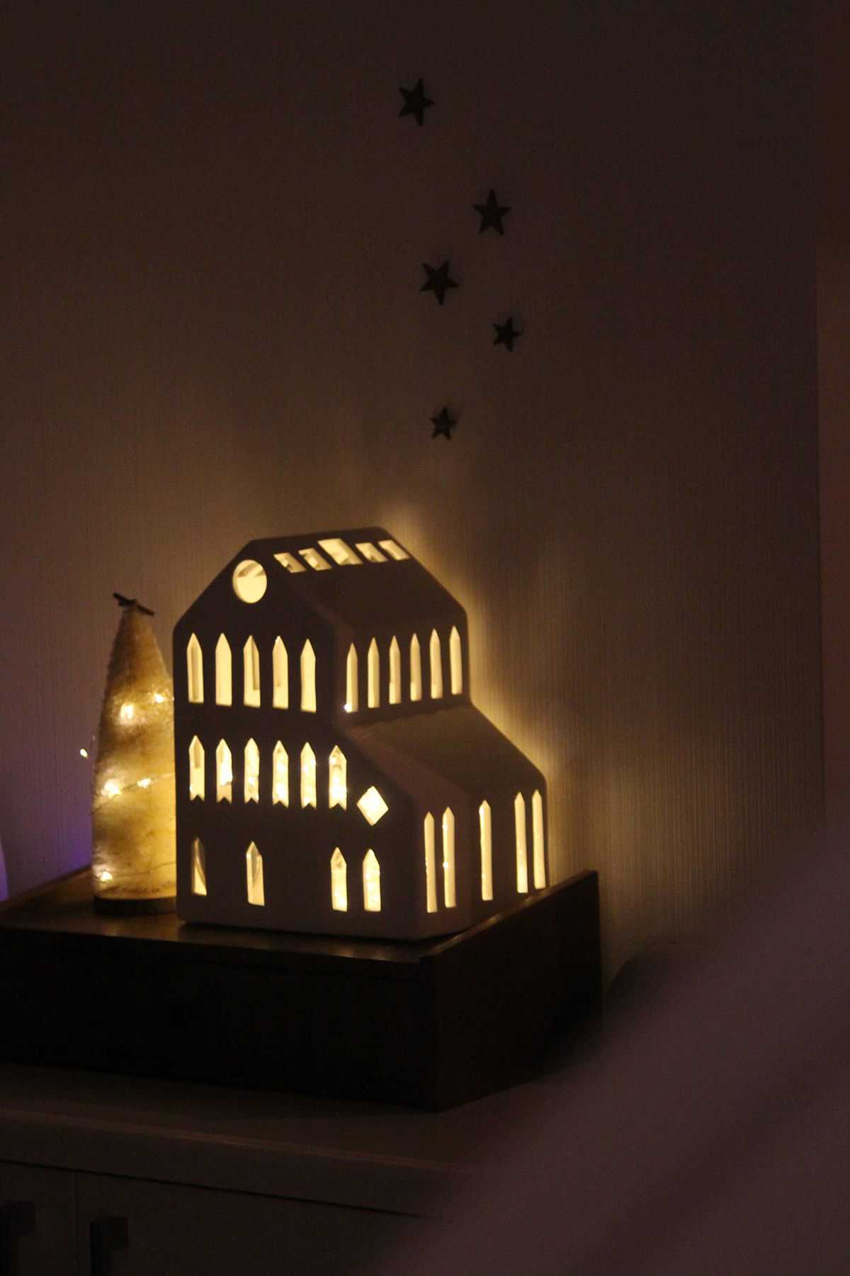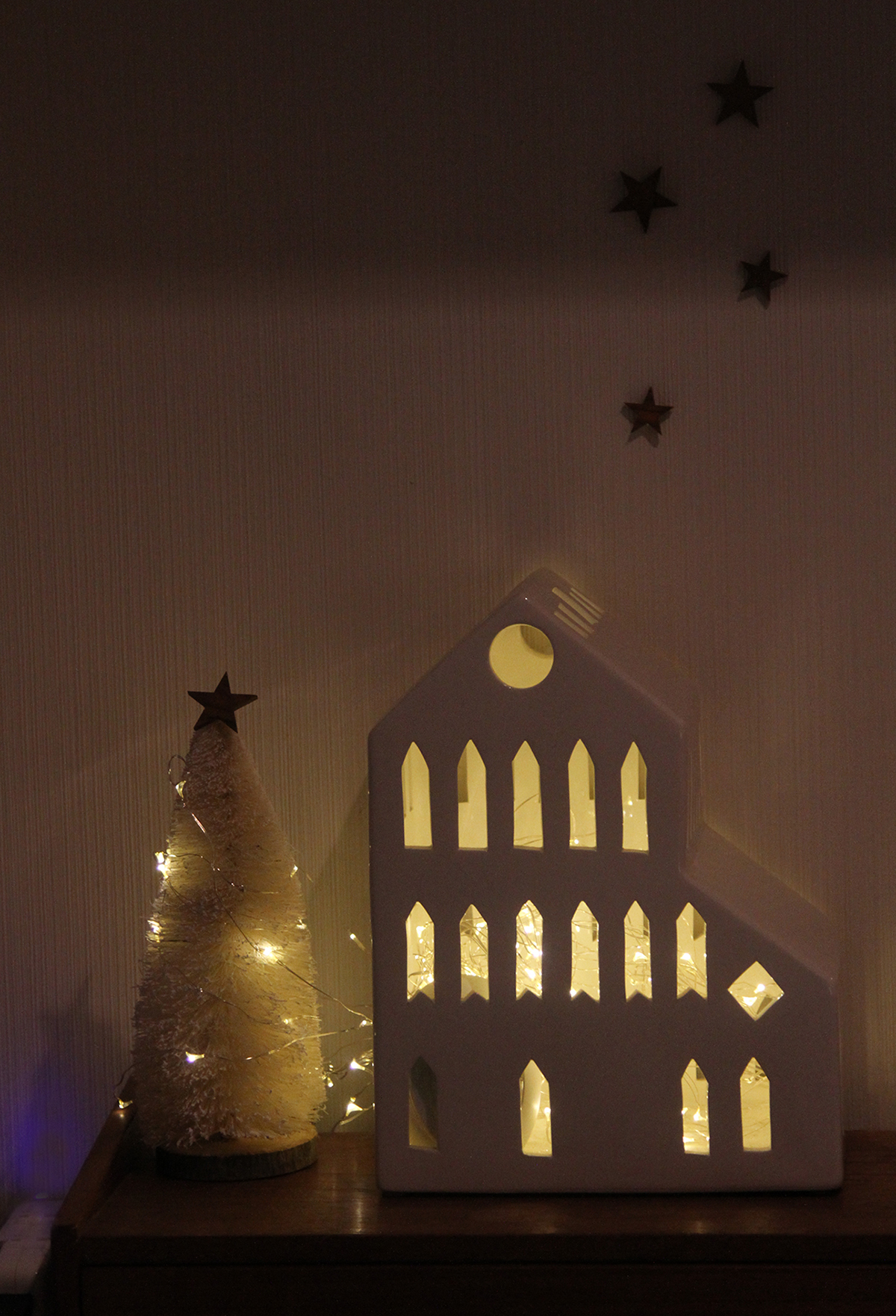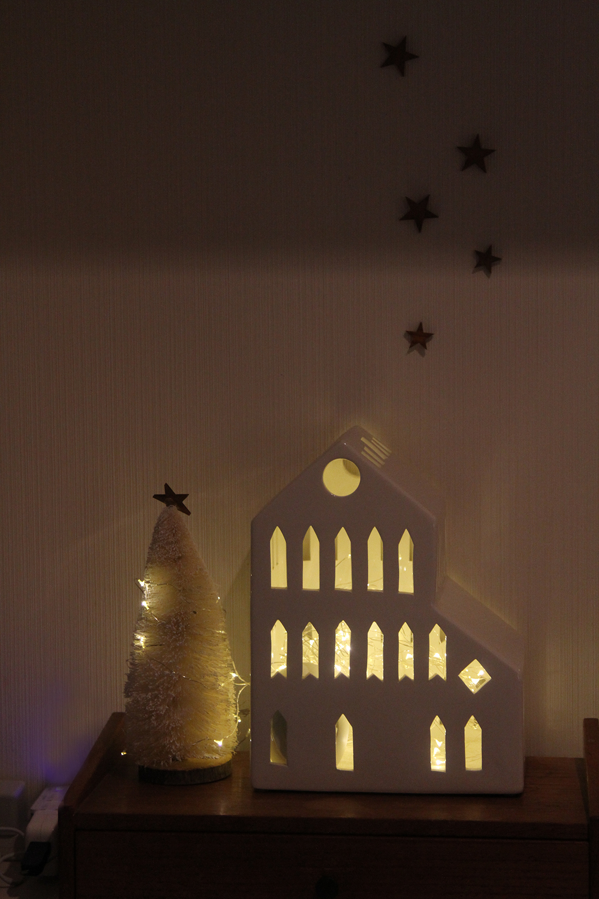 玄関のハウスとツリーに使ったイルミネーションは