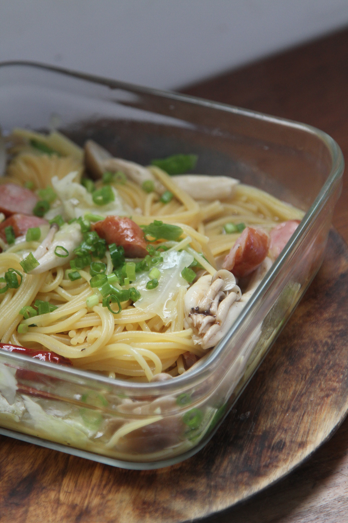 美味しいはず。和風ペペロンチーノみたいな味です。