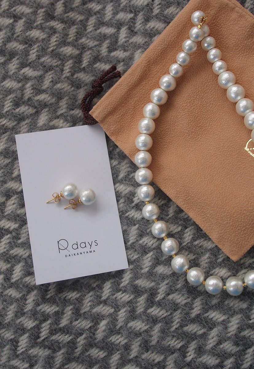 コットンパールのネックレス。