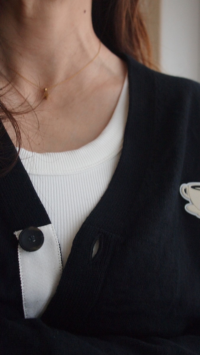 ラウンドネックのやわらかなラインが、