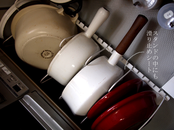 鍋、フライパンの下にもIKEAの滑り止めシートを。