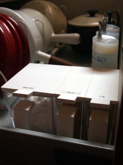 調味料ケースが並ぶ端っこは、