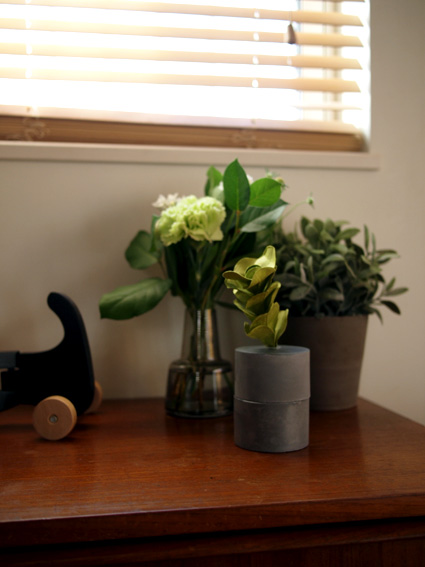 コンクリート素材のブリックパーツと、緑の組み合わせが