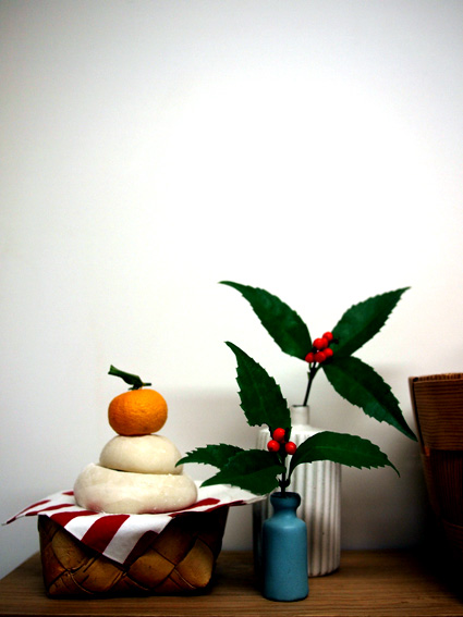 千両を一輪挿しに飾り、お正月準備。