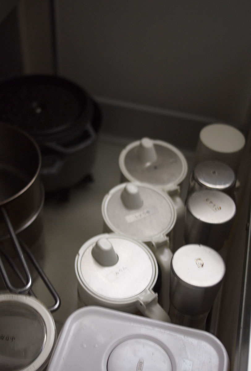 (コンロ下には調味料とよく使う鍋)